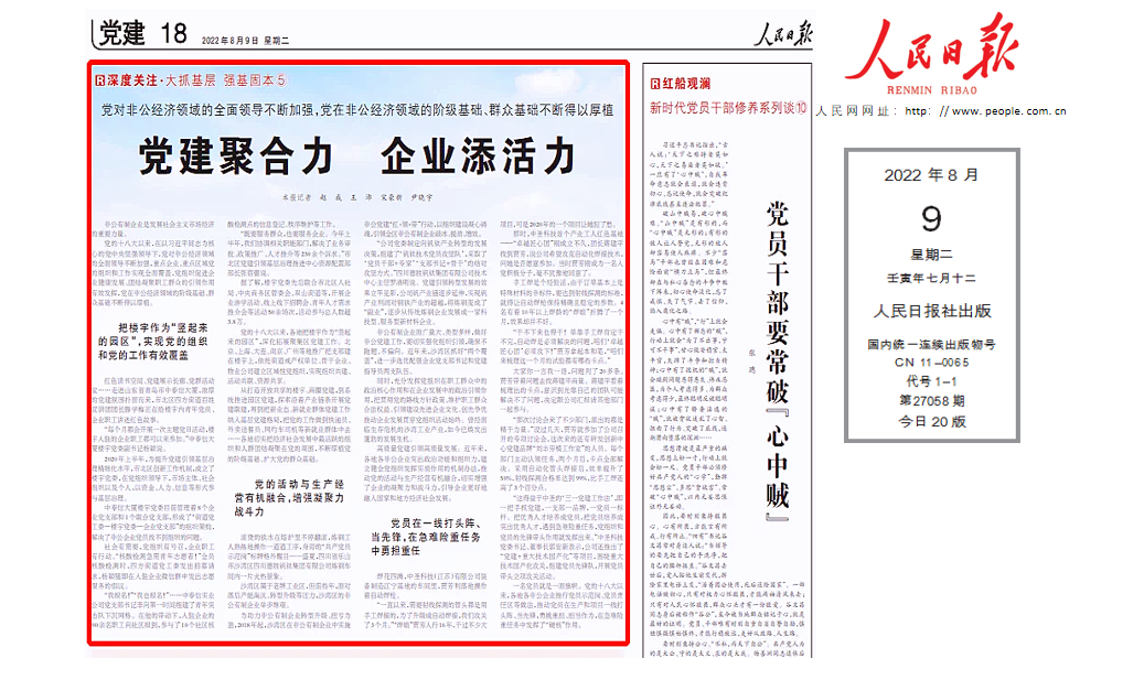 《人民日报》点赞公司党建工作